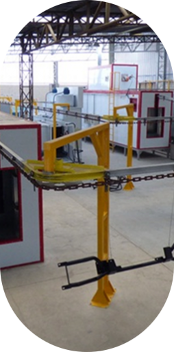 Linha contínua com cabines Rollon, Rolloff para pintura eletrostática de alta performance.
